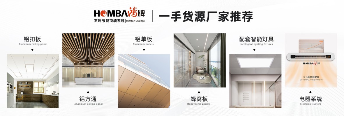 公司總部設在廣州南沙,總生產基地位于廣西玉林,在香港、東莞、深圳、惠州、佛山等地設有服務中心,廠部總占地面積達40000平方米。公司從美國引進全套HOMBA Ceiling生產管理技術和液壓,輥壓設備,并擁有一批從事鋁合金天花,電器和幕墻近二十年加工制作經驗的高素質技術人員,為公司產品品質提供強有力的保障.產品主要包括:鋁扣板、鋁蜂窩板、鋁方通、鋁單板、鋁型材、鋁條扣、鋁格柵、集成電器以及各種非標造型的天花鋁板。各產品均具精巧的結構及吊裝系統,并可根據設計要求,精確加工成弧形、梯形、跌級等多種造型的裝飾要求,